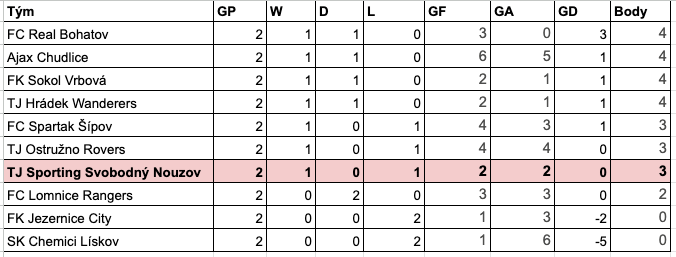 | TJ Sporting Svobodný Nouzov | 0:1 | TJ Hrádek Wanderers |